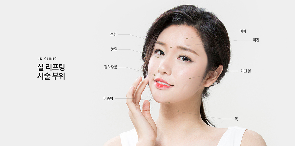 제이디클리닉의 실리프팅은 의료용 실을 피부 진피층에 삽입하여 중력에 의해 내려간 피부와 처진 얼굴을 개선해주는 효과가 있으며