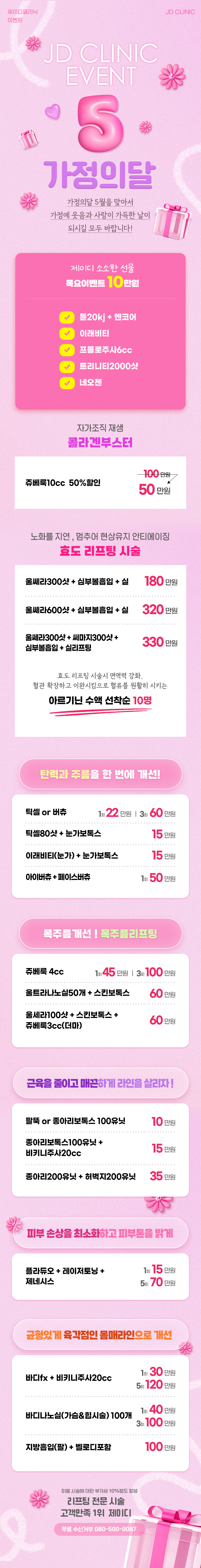 제이디클리닉 5월이벤트 페이지 정보 작성자 제이디클리닉 작성일24-04-30 13:28 조회4,143회 댓글0건 관련링크 이전글 다음글 목록 본문 댓글목록 등록된 댓글이 없습니다. 이전글 다음글 목록